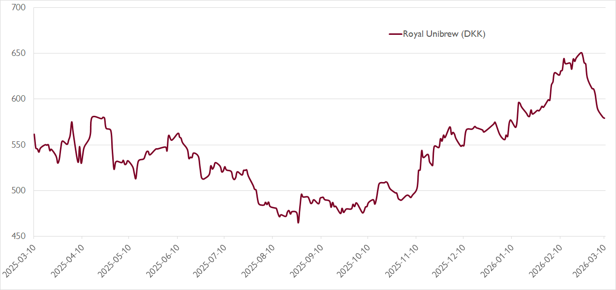 Royal Unibrews bokslut visade på 4 procents organisk tillväxt under fjärde kvartalet och en vinsttillväxt på 9 procent som var i linje med förväntningarna. För 2026 guidar ledningen för en organisk EBIT tillväxt på 6–10 procent. Vi ser dock potential till en högre tillväxt än prognosen via en kombination av lönsam volymtillväxt i Italien, Frankrike och International samt förbättrad kommersiell utveckling i Nederländerna och Norge samt ytterligare effektivitetsförbättringar inom koncernen.