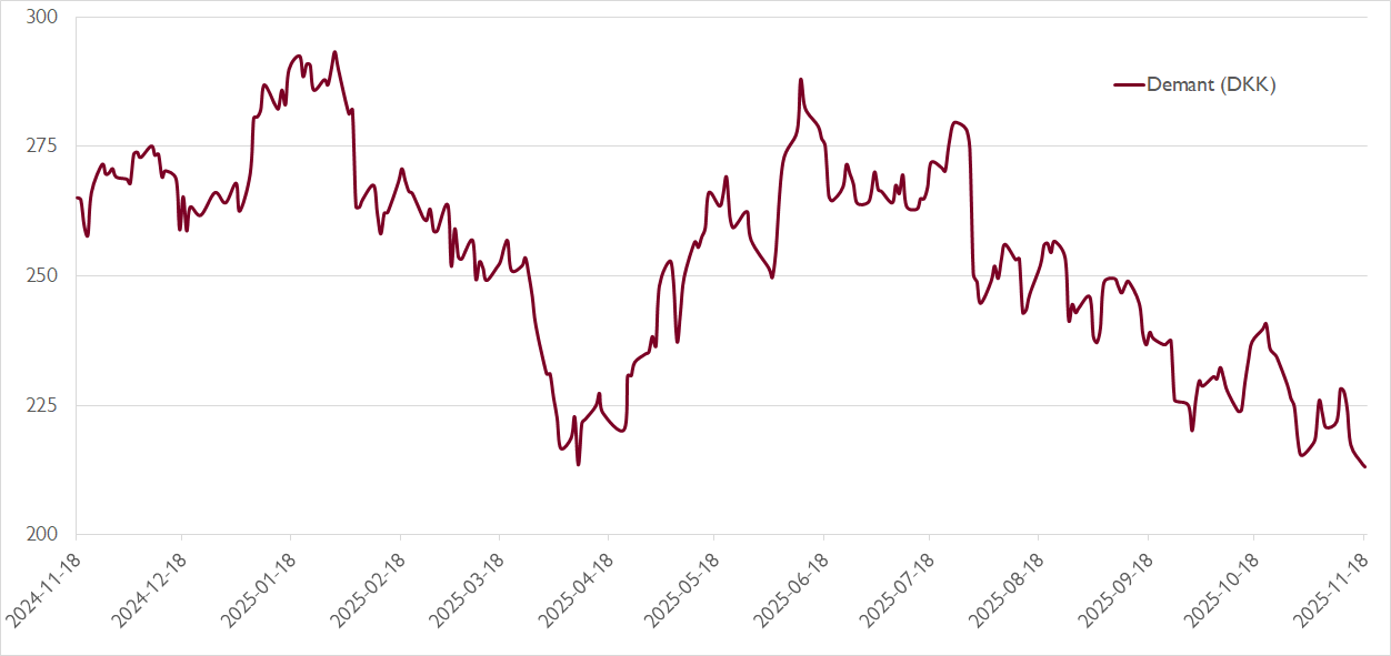 Aktiemarknaden har emellertid inte alls tagit fasta på att Demant sannolikt går mot bättre tider nästa år. I stället har aktien tyngts av en oro kring huruvida de senaste årens svaghet på hörapparatsmarknaden, med en organisk tillväxt under den långsiktiga trenden, är strukturell eller cyklisk. Vår bild är att nedgången varit av cyklisk karaktär, bland annat påverkad av försämrad köpkraft hos den äldre befolkningen.