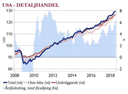 Detaljhandelsförsäljningen i USA i juli överraskade stort liksom småföretagens optimism. Regionala industribarometrar förra veckan gav dock lite olika signaler.