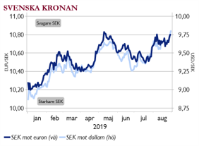 Riksbanken redan på torsdag. Ingves har argument för en lättare penningpolitik: Inflationen är under målet 2 procent, omvärlden är skör och signalerna från jobbmarknaden har mjuknat. Intressant dock hur de bedömer att den svaga kronan påverkar inflationen. Vi tror Riksbanken tar en duvaktig ton men inte lika aggressiv som ECB, men det som tynger SEK är främst konjunktur- och Brexitoro.