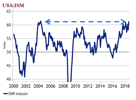 ISM-index slog alla förväntningar med råge när det förra veckan steg över 61 – den högsta nivån sedan 2004. Tidigare har vi ju sett stark småbolagsbarometer och hushållsoptimism.