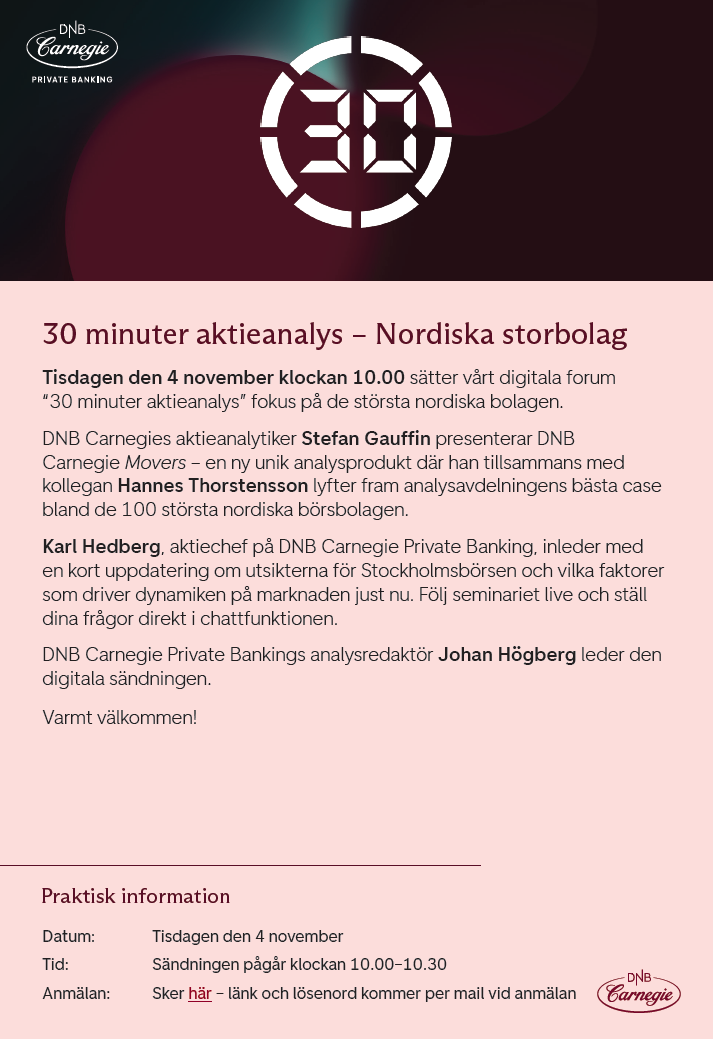 Tid: Klockan 10.00-10.30 – digitalt seminarium