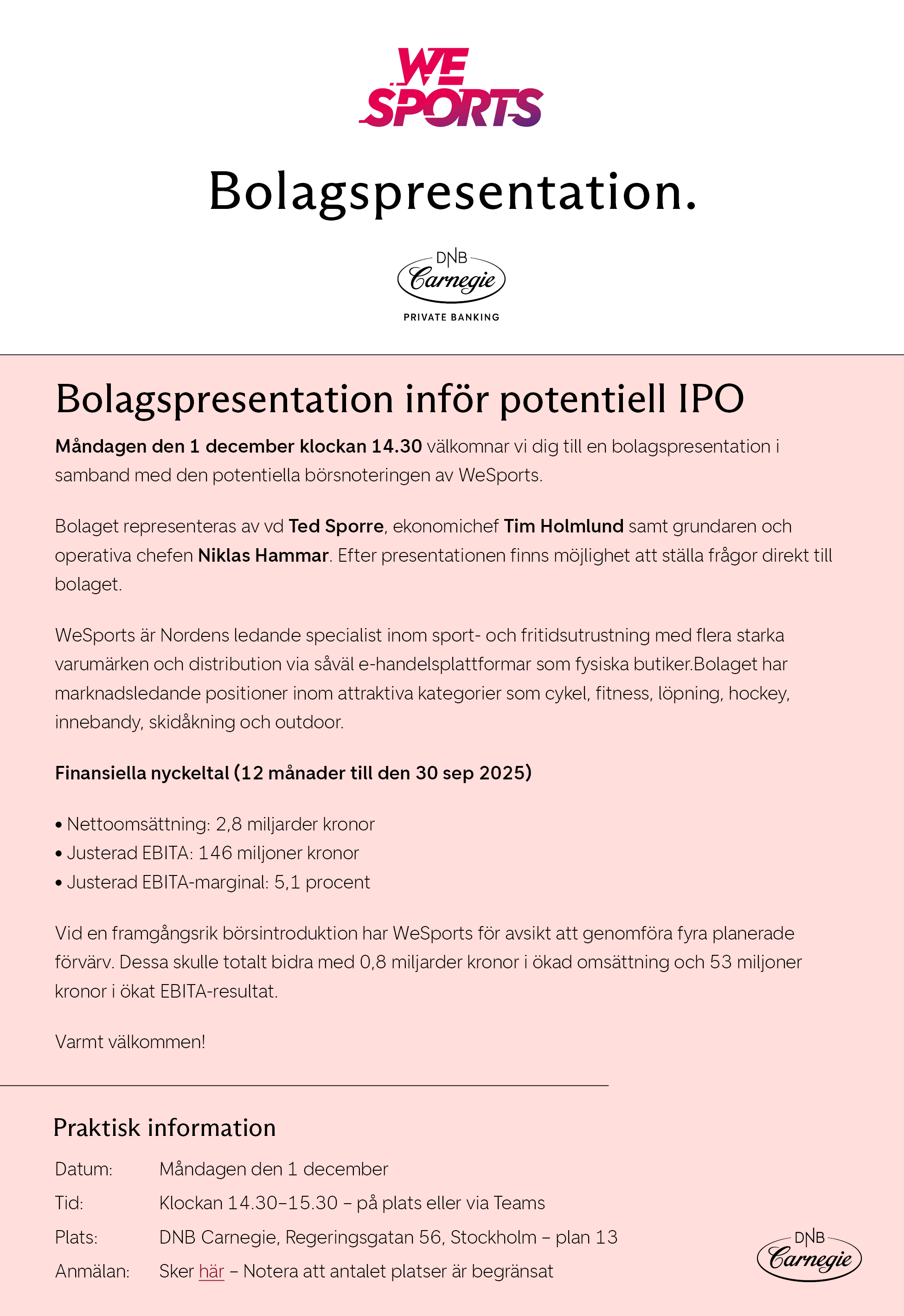 Plats: DNB Carnegie, Regeringsgatan 56, Stockholm – plan 13